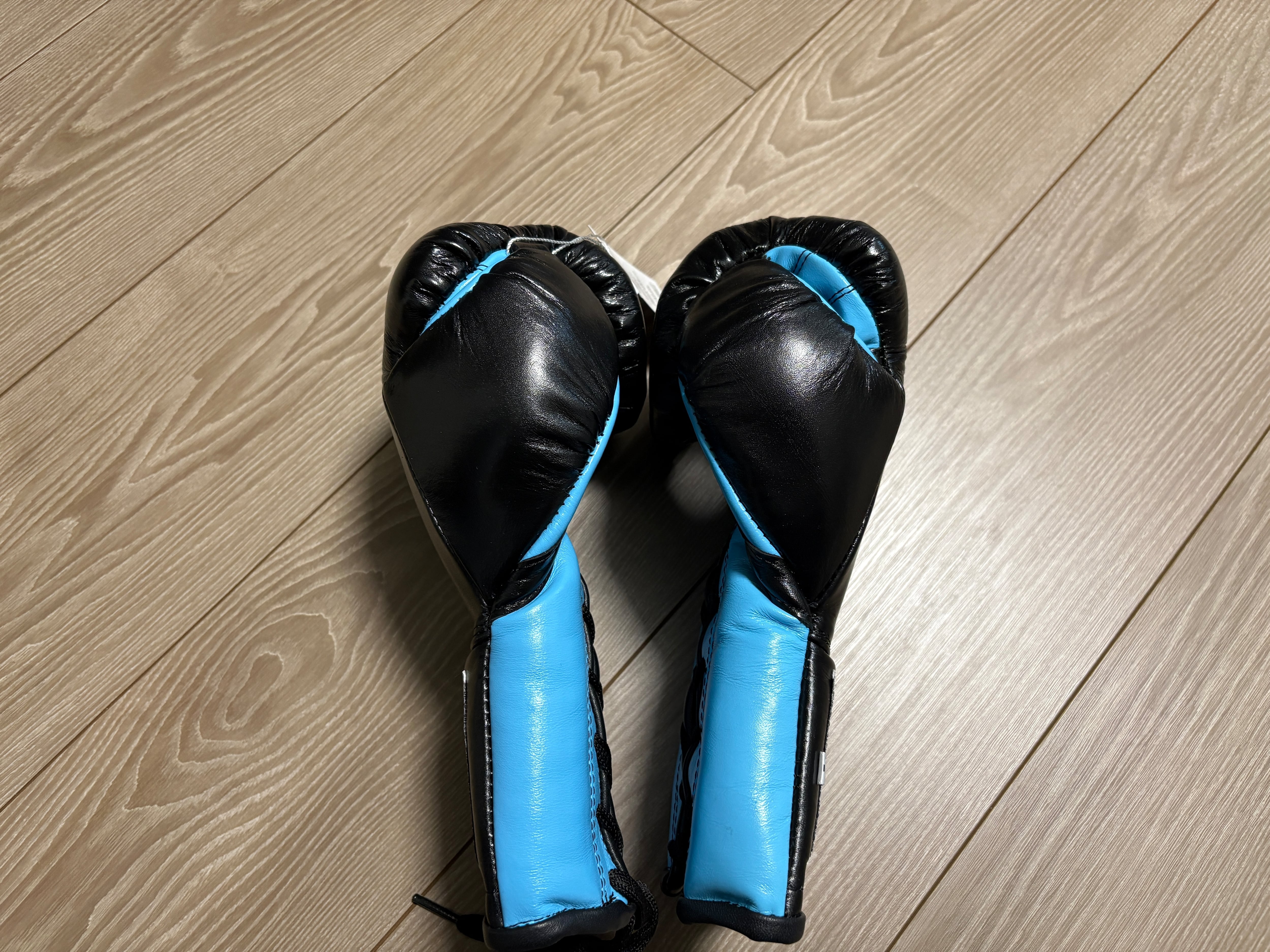 プロボクサーのトレーニング用、紐式のグローブです。